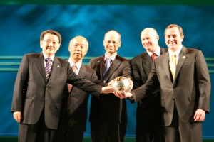 冒頭で、優秀論文の表彰が行われたあと、組織委員会から開催概要報告がありました。次回以降の開催国代表からプレゼンテーションには、2013年東京の代表として東京都青少年・治安対策本部 倉田本部長がスピーチしました。パッシング・グローブ・セレモニーには、当会副会長 坂内正夫が登壇しました。なお、閉会後の世界会議組織委員会の会議にて、2014年の開催国が米国デトロイトに決まっています。
