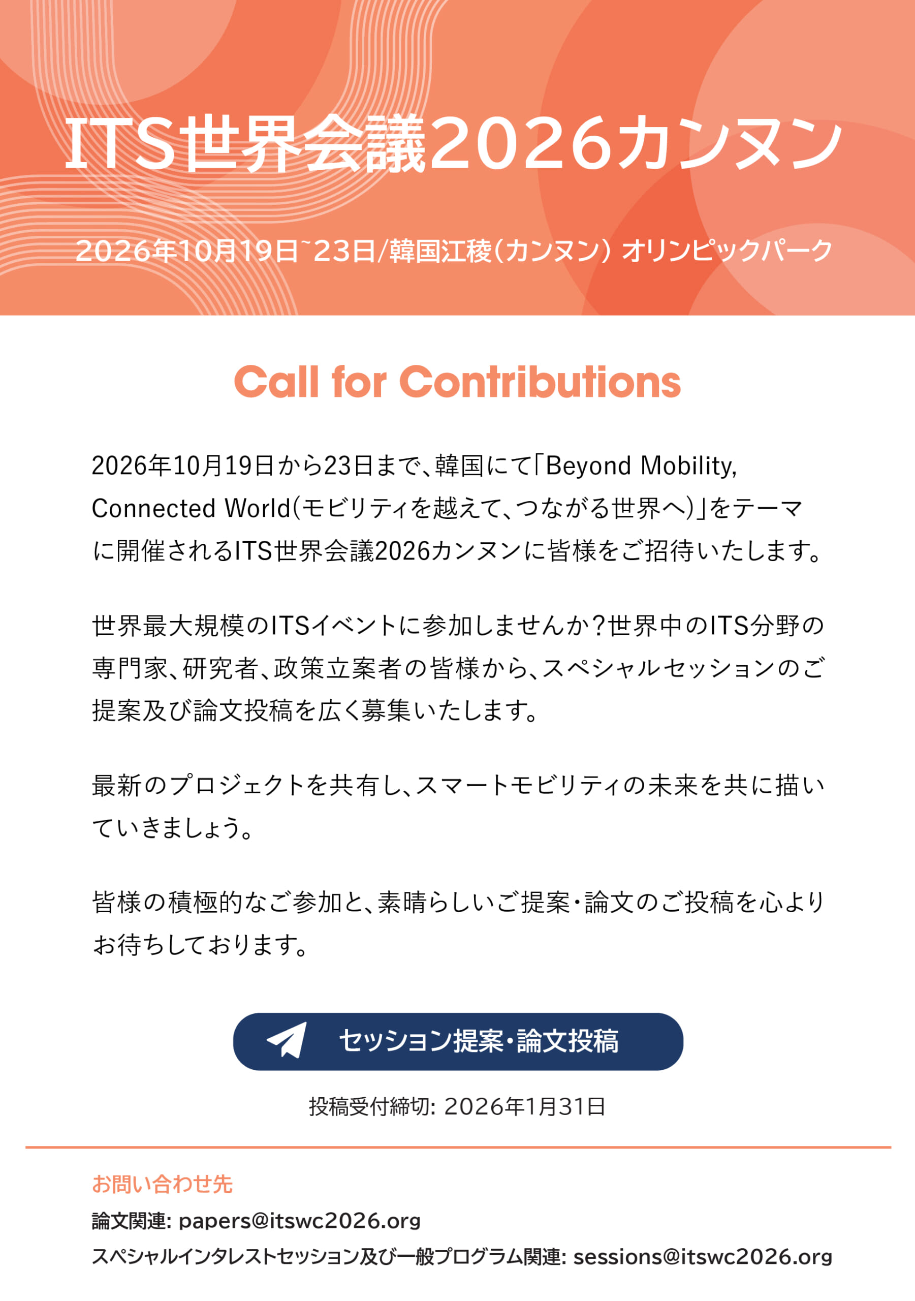 【公式ホームページ】https://2026itsworldcongress.org/ITS/120002/index.do