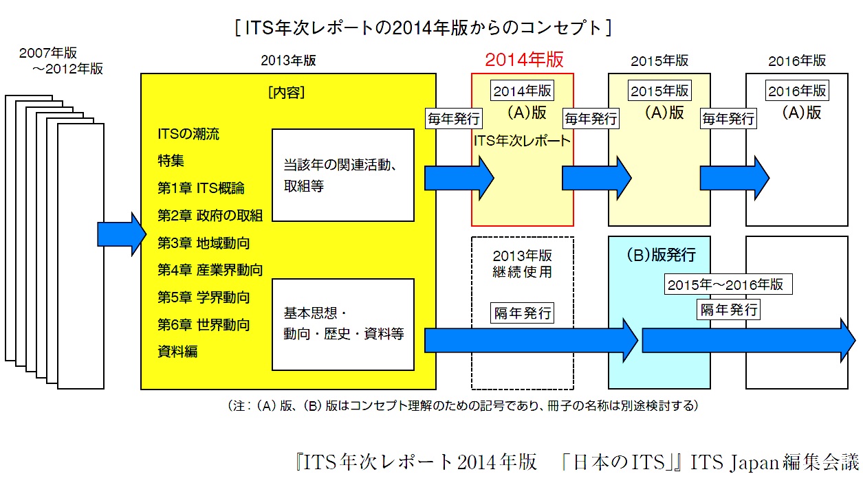 なお、近年のITSをとりまく環境変化に対応し、2014年版より従来からの基本的な編集方針を維持しつつ発行コンセプトを見直し、内容の充実を図ることといたしました。