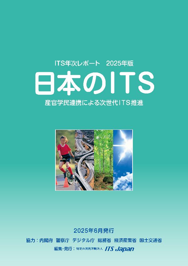 - ITS 年次レポート「日本のITS」は、従来からの産官学民連携によるITS 推進状況の紹介、ITS全体を俯瞰したITS入門書としての機能を維持しつつ、その年の特徴的な事柄の紹介等も含めて、ITS関連の活動報告として毎年冊子で発行いたします。