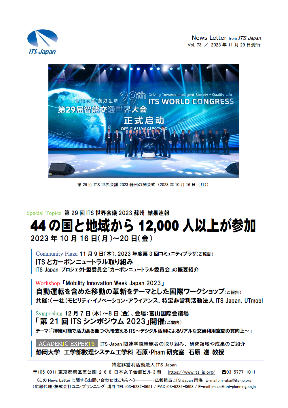 News Letter from ITS Japan(Vol.73)を掲載しました