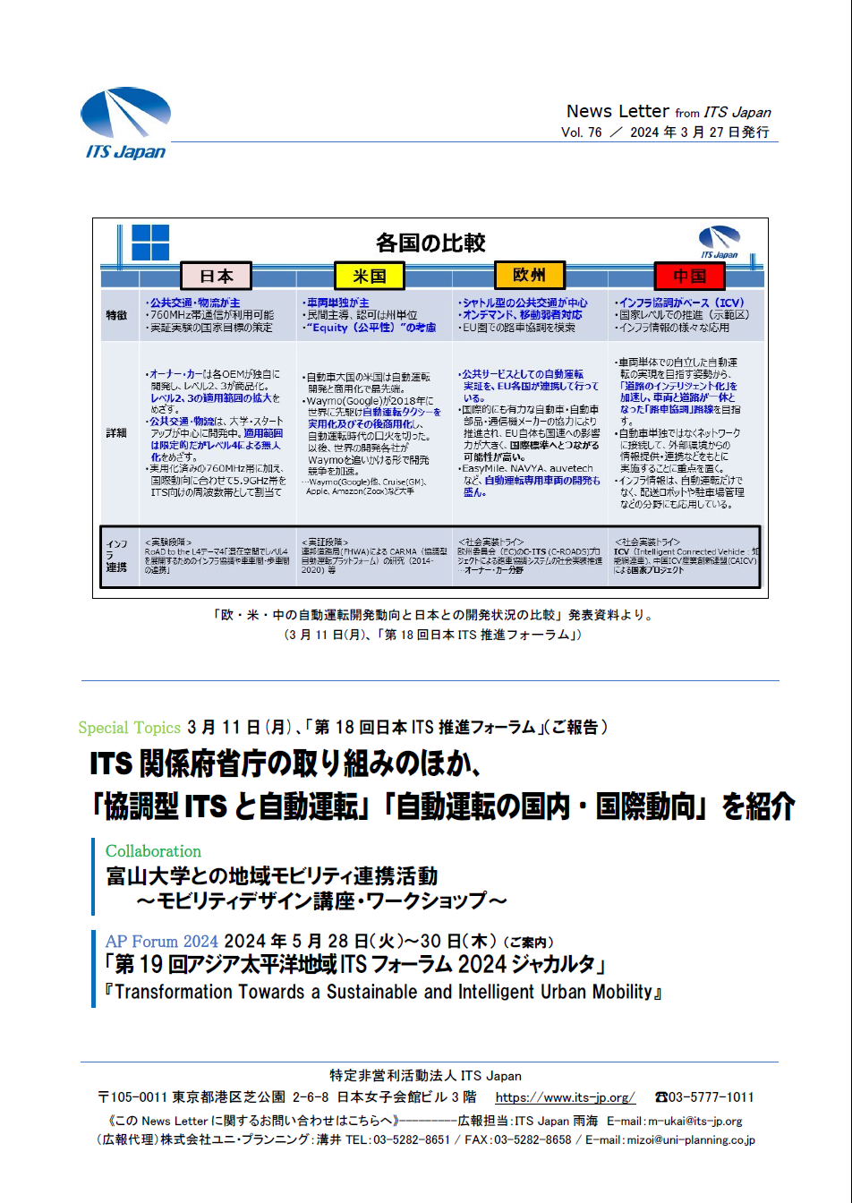News Letter from ITS Japan(Vol.76)を掲載しました