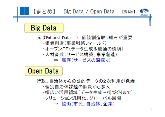 資料掲載:「ビッグデータ/オープンデータに関するITS Japanの取り組み」