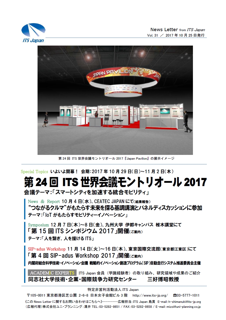 News Letter from ITS Japan(Vol. 31)を掲載しました