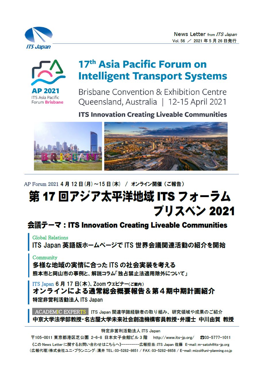 News Letter from ITS Japan(Vol.56)を掲載しました